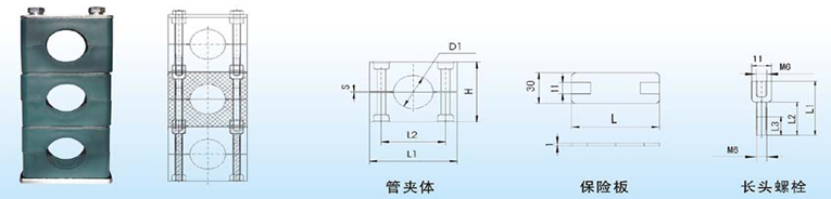 应用领域:本产品适用于冶金、石油、化工、车辆、船舶、电力等机械液压系统中的油、水、气为介质的固定管道。轻型系列管夹适用于中低压(PN≤8Mpa)管道固定。