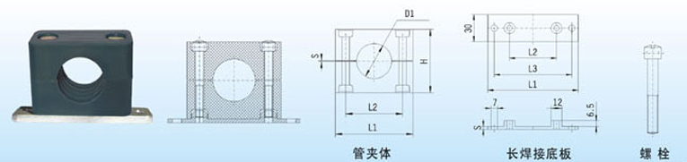 应用领域:本产品适用于冶金、石油、化工、车辆、船舶、电力等机械液压系统中的油、水、气为介质的固定管道。轻型系列管夹适用于中低压(PN≤8Mpa)管道固定。