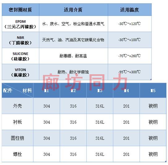 橡胶材质:三元乙丙橡胶、硅胶、氟胶、丁腈橡胶等。